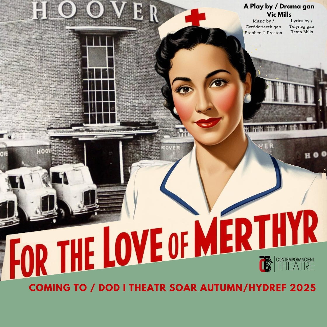 For the Love of Merthyr is set in 1948, post-war Merthyr Tydfil. A town that is recovering from the ravages of war and coming to terms with a brave new world. It centres around the early days of the NHS and the opening of the ‘new’ Hoover factory in the town. It especially deals with the role of women in shaping the NHS, alongside how immigrants came to Merthyr to work in the new NHS hospital and care system.